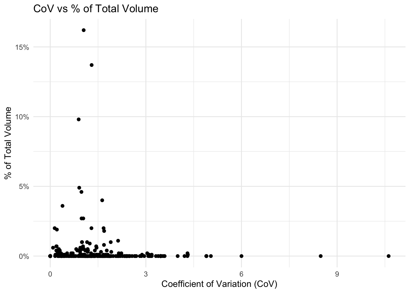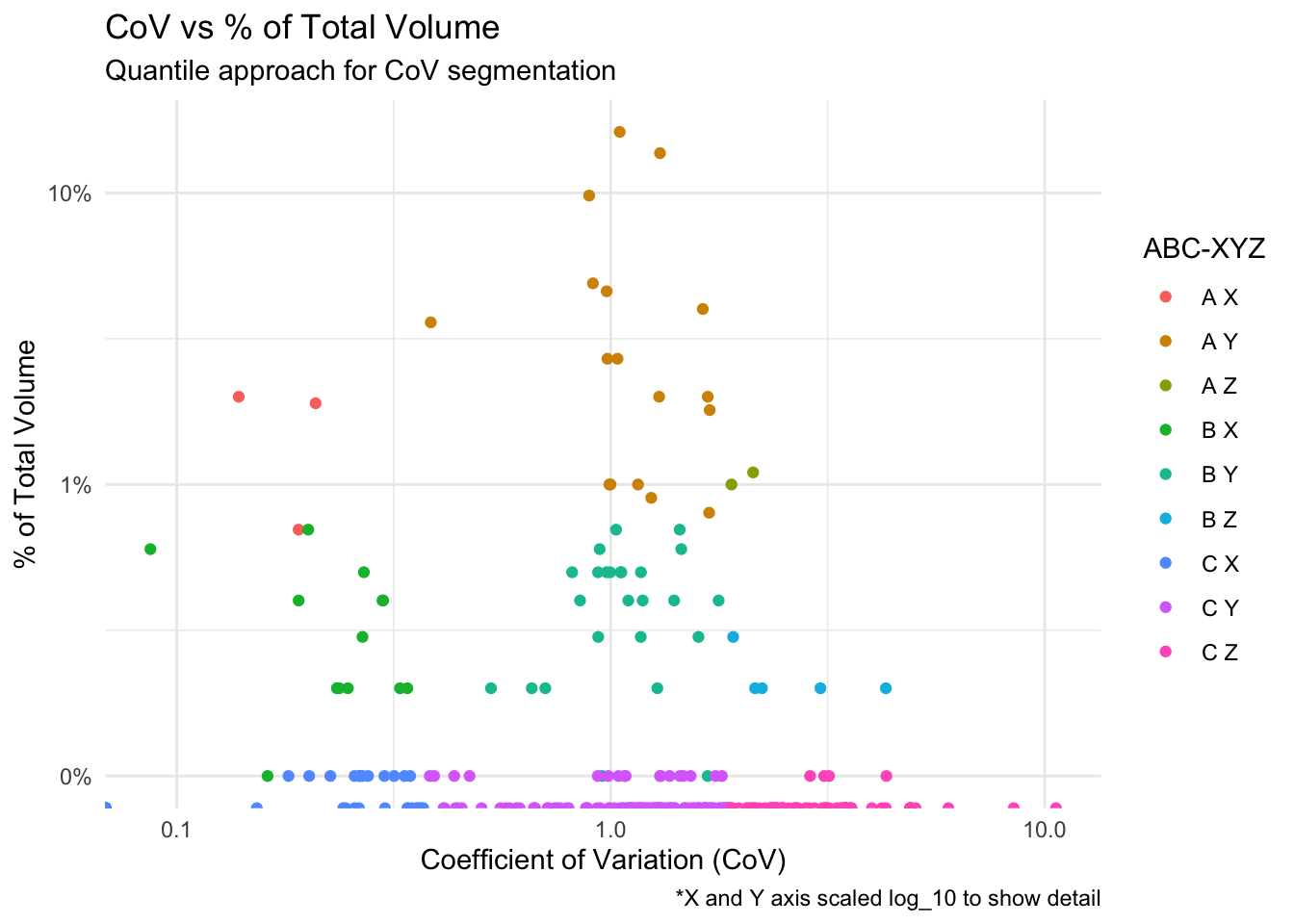 Plotting CoV against percent of total volume creates a simple but powerful view: